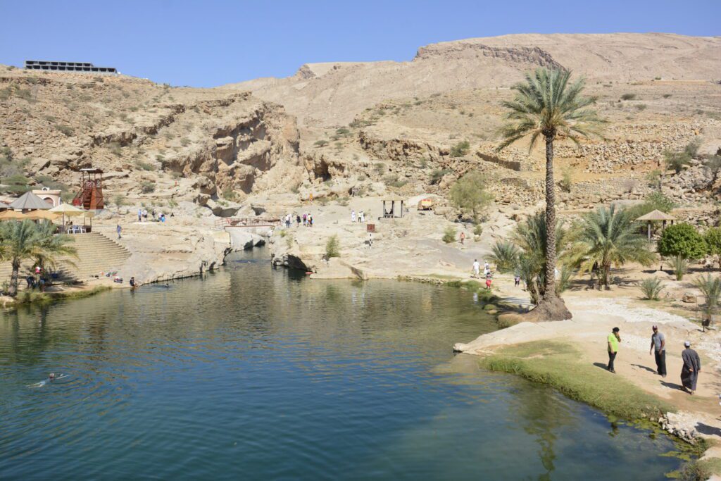 Über das Wadi Bani Khalid, dass wir wandernd erkunden erreichen wir am Abend unser Wüstencamp.